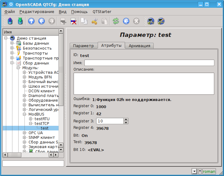 Сбор данных. Модуль. ModBUS. Контроллер. Параметры атрибуты.