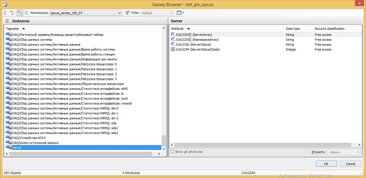 Походил по узлам - и по серверу, с отображаемыми атрибутами, и по объектам из DAQ, где атрибуты не отображаются.