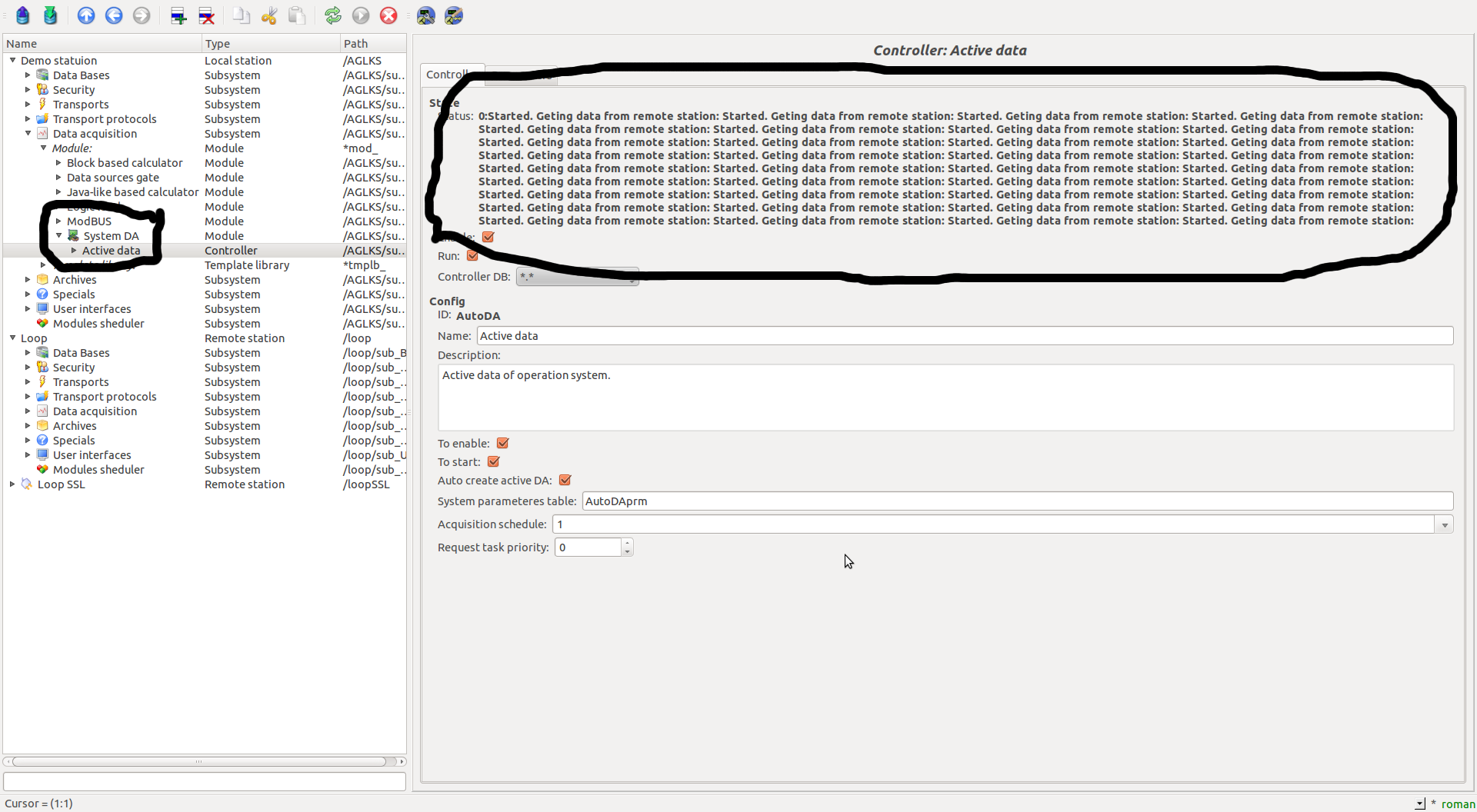 2. Обнаружил проблему, что при принудительном указании в поле "Предпочтение исполнения" ссылки на саму себя (во вкладке "Резервирование" подсистемы "Сбор данных" в поле "Контроллеры") систему начинает колбасить (см. рис.). При этом появляется признак "Удаленный", хотя фактически станция ссылается на саму себя. Это можно как-то поправить? Было бы здорово. Проект получился бы универсальным на все станции.