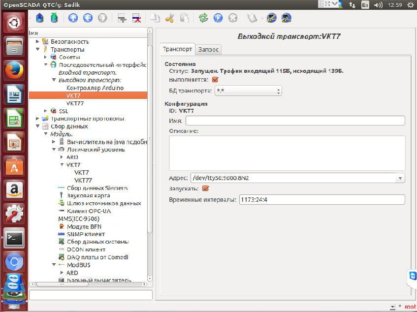 1 - создал выходной транспорт Serial указал адрес и временные интервалы и включил.