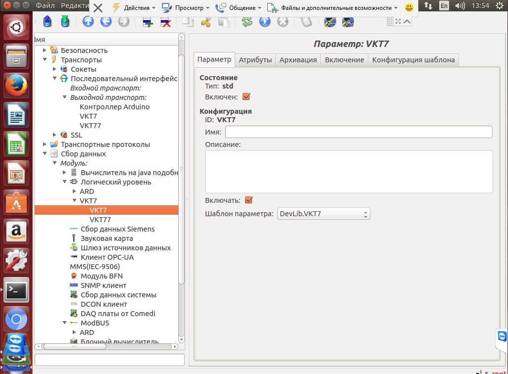 2 - создал Сбор данных -> Логический контроллер (подключил из библиотеки шаблон VKT7) и включил