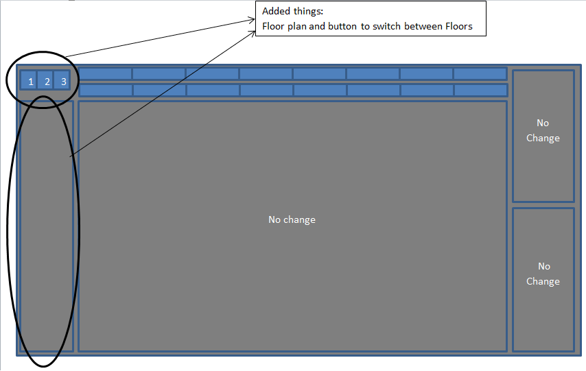 I want to display floor plan (in the big encircled part on left hand side) on respective floor button pressed (1,2 or 3).