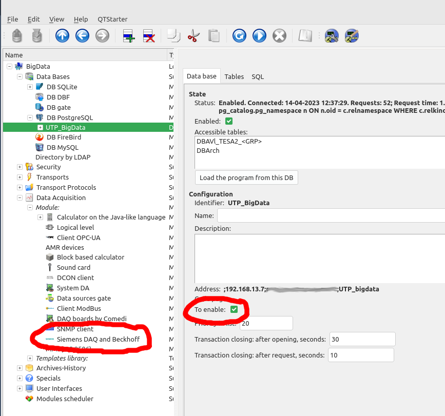 If I have two different database (SQLite and PostgreSQL), openSCADA can't load Data Acquisition's config properly if all databases "To enable".