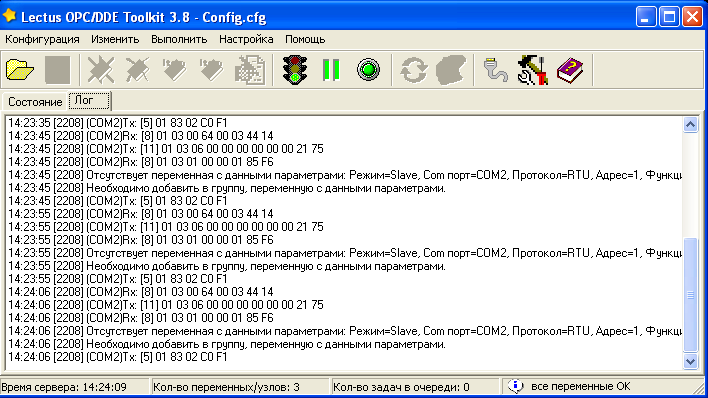 Наличие последнего говорит о том, что ранее вводился для опроса один регистр 0x100. Полная очистка и переформирования карты которых может быть осуществлена после перезапуска или даже отключения/включения объекта контроллера ModBus.