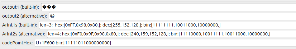 after that code codePoint == U+1F600. it is smile. pic2. setUTF8_new - correct, SYS.strFromCharUTF - wrong.