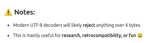 also the chat said that 6 bytes is not allowed by RFC 3629. and is considered unsafe, but code here: