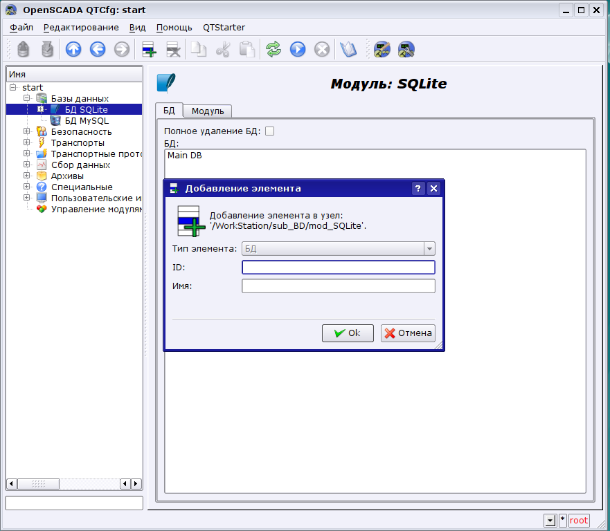 Затем в руководстве написано: Для использования библиотек OpenSCADA, хранящихся в файле БД, их нужно подключить, добавить в объекте модуля БД "SQLite" (рис.3.1.3), установить адрес и кодировку БД в "UTF-8" (рис.3.1.4).