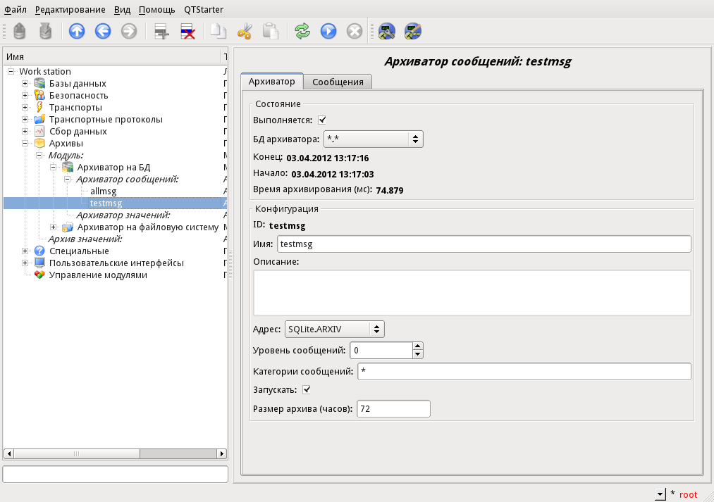 Запускаю скаду, первых сообщений в архиве нет. Установлено новое время начала архиватора. А прошло двое суток, а не более 3-х.