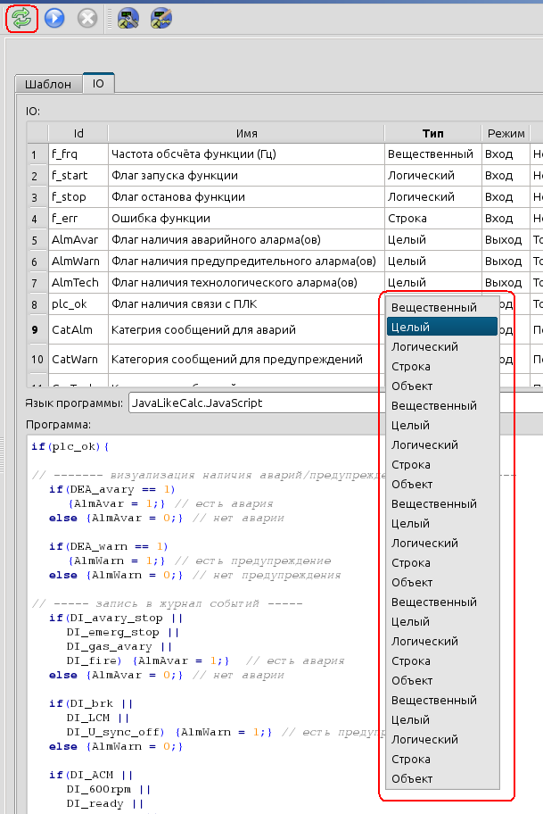 3) опять нажимаем кнопку "Обновить", снова выбираем поле "тип" того же параметра, видим 15 вариантов (варианты троируются)