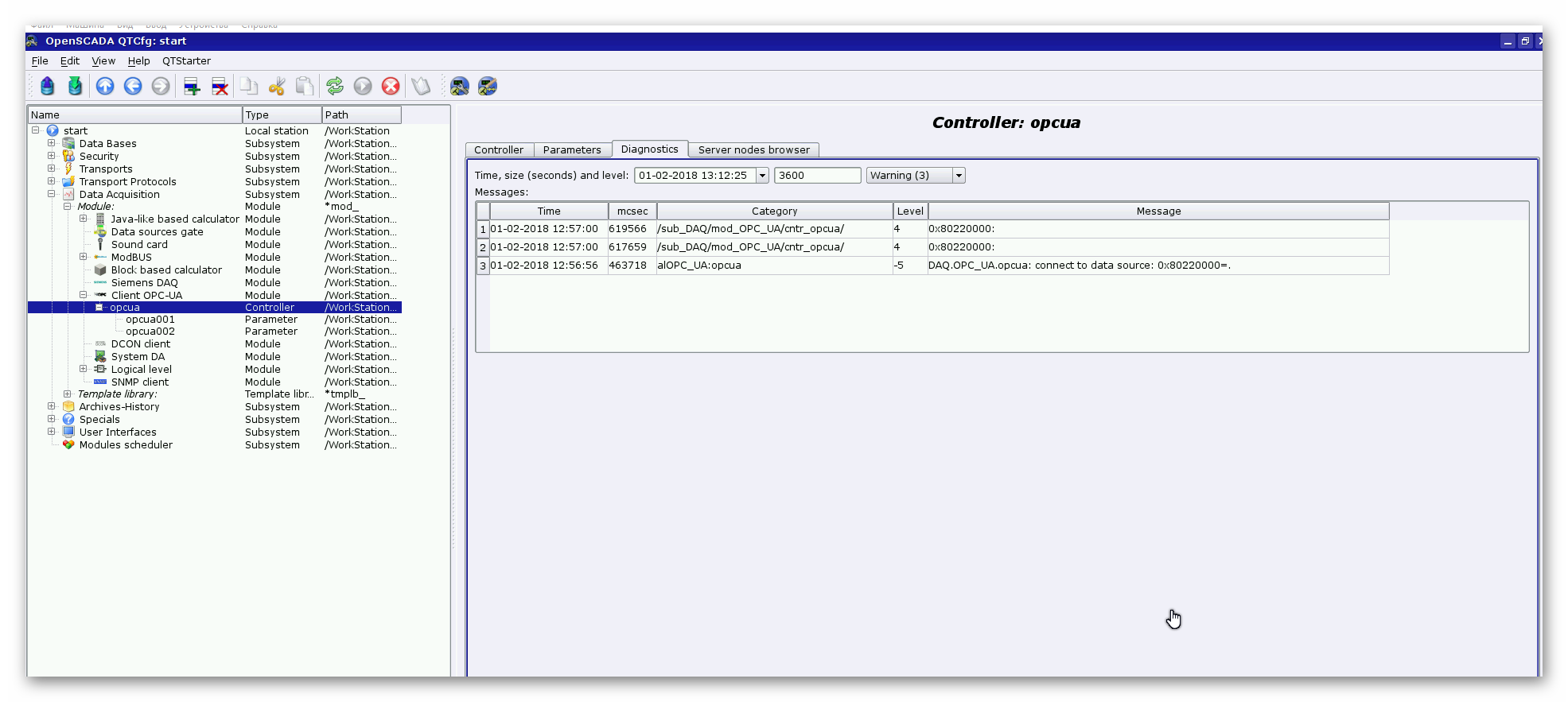 Судя по статусу на вкладке Controller связь с opc ua сервером есть (см. вложение 005)