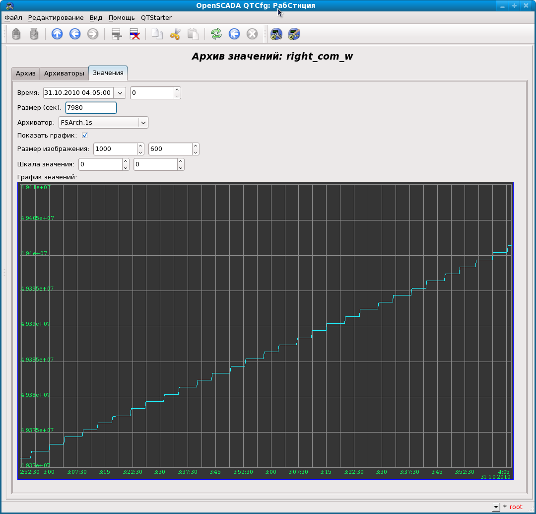 При переходе на зимнее время архивация на файловую систему произвелась корректно, просматривал в QTконфигураторе, время с 3.00 по 3.59 повторяется 2 раза и архивируемое значение увеличивается без резких скачков. рис1