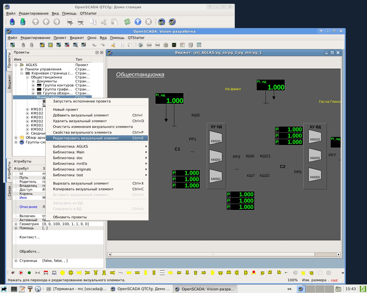 - при попытке выбрать пункт меню "Редактировать визуальный элемент" как показано на (снимок2) OpenScada падает. Краш файл тоже прилагаю. В этом месте при использовании Вашего "живого" CD - появляется окошко с восклицательным знаком.