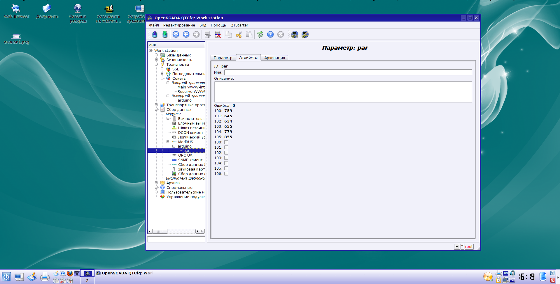 Организована сеть: Ус-во для автоматизации дома (Modbus TCP Slave) + Сервак с OpenScada (Modbus TCP Master). Собственно вопрос в следующем. До недавнего времени стояла Opensacada версия 8 (источник с лайф сиди ALTLinux_6-OpenSCADA_0.8.13-TDE_3.5.13.2-i586-LiveCD_USB.iso)