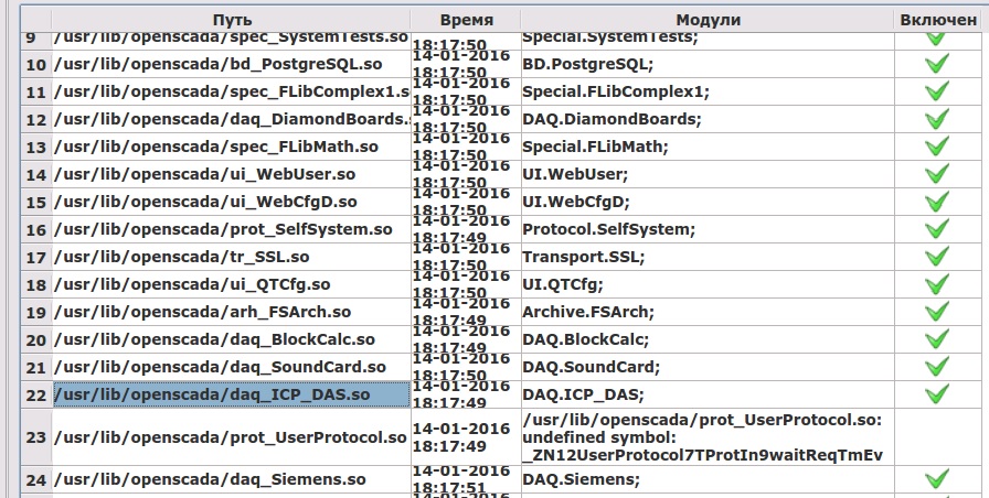 Проблема: После старта openscada_start --demon пользовательский протокол не запускается. После обнаружения этого факта войти в конфикуратор и запустить вручную получается успешно.
