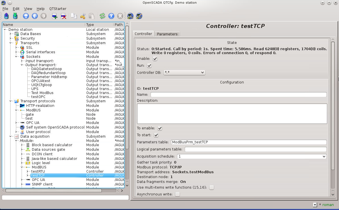создан контроллер в Module->Modbus->testplk (destibnation node: 4)