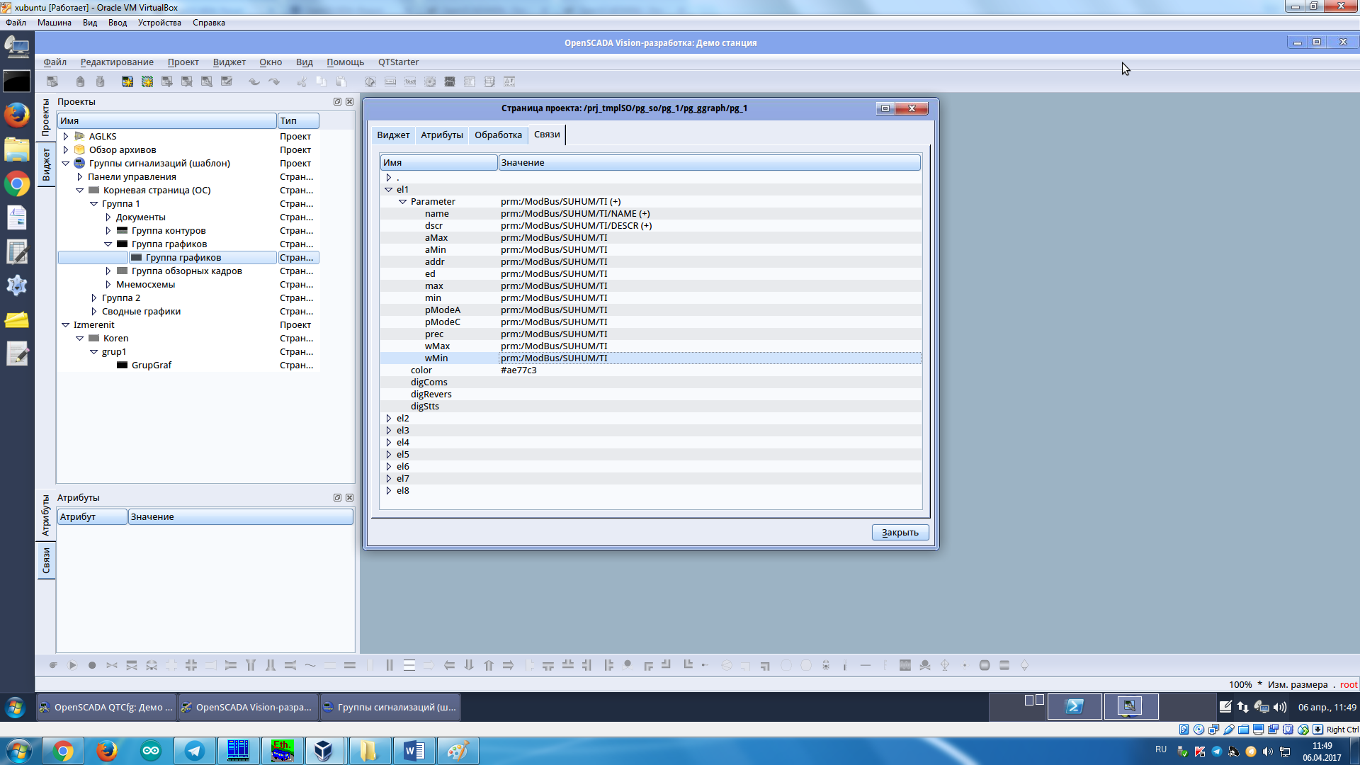 - вкладки "Обработка" чтобы были видны настройки связи и обработки виджета,