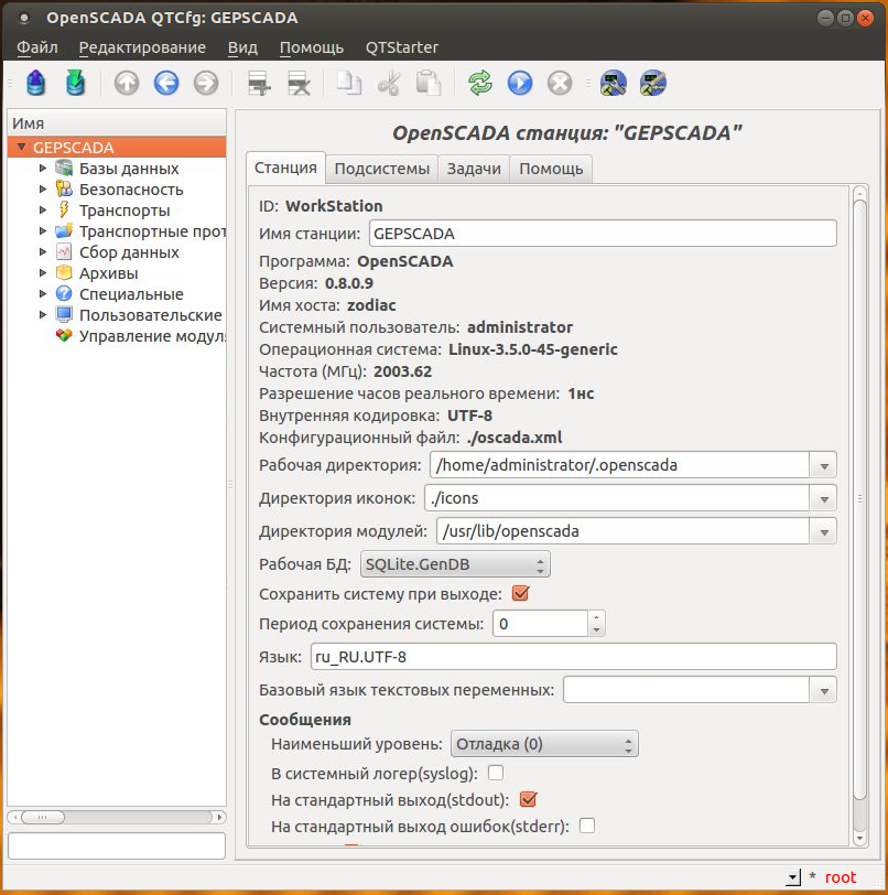 Согласно руководства по быстрому старту установили чистую OpenSCADA 0.8.0 LTE Update 9 из deb пакетов на Ubuntu Server 12.04 LTS x64.
