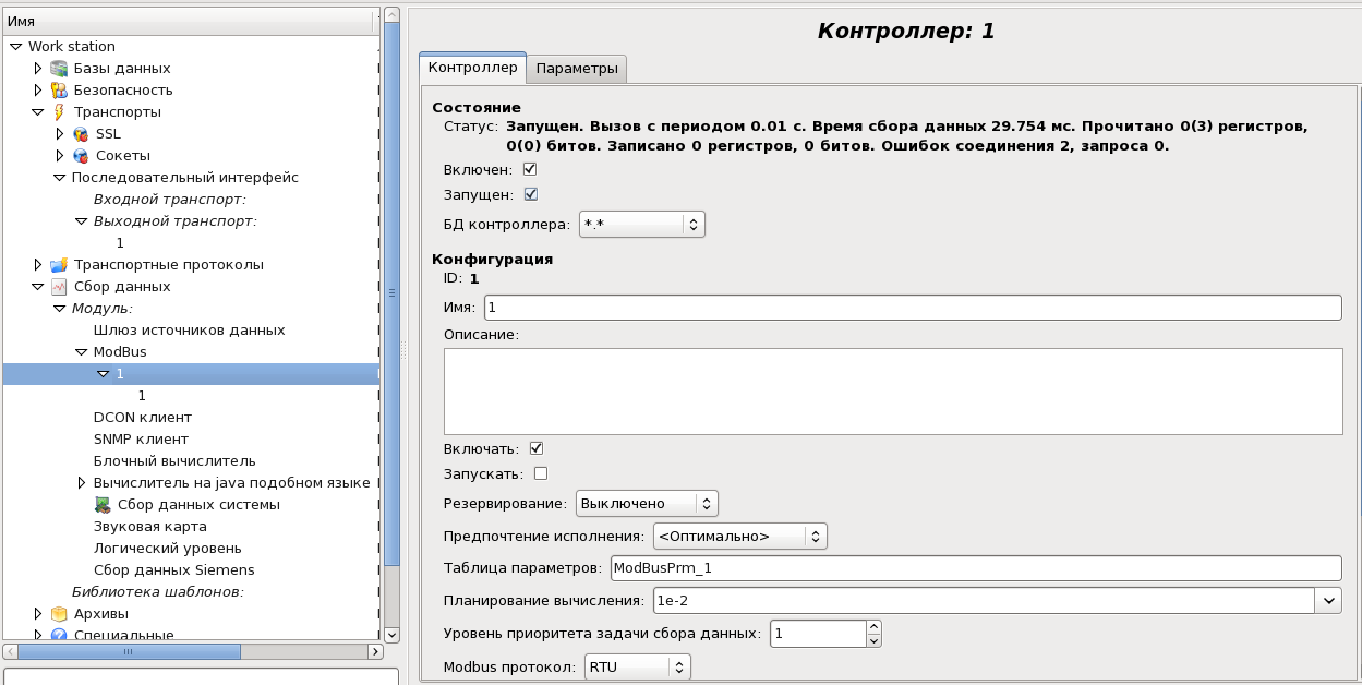 Включаю контроллер - надпись статуса через пару секунд гласит - ..... прочитано 0(3) регистров ..... ошибок соединения 4, запроса 0.