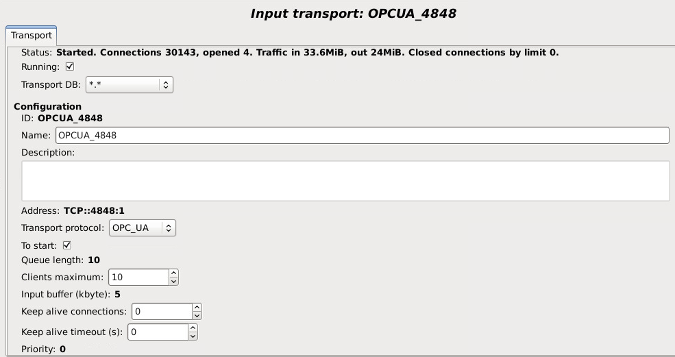 Сегодня увидел, что данные не отображаются в клиентах. Когда зашел в настройки Transport-Input-OPC UA, то обратил внимание на более чем 30000 connections. Скриншот во вложении. Интересно, откуда появляется такое число соединений.