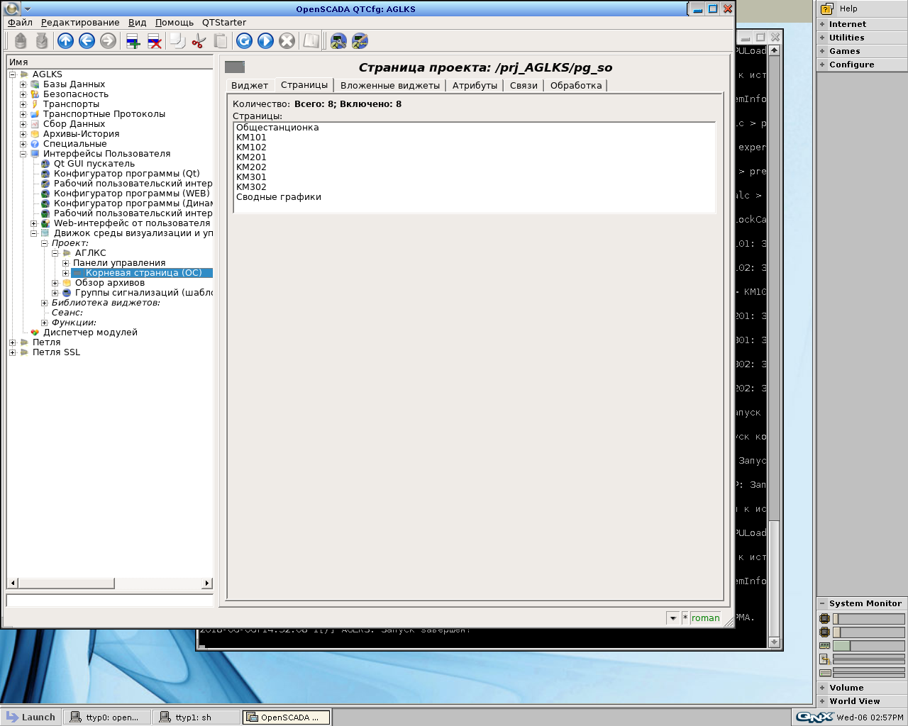 Но если выбрать страницу двойным щелчком мыши, то переход на следующий уровень происходит, после чего OpenSCADA "падает".