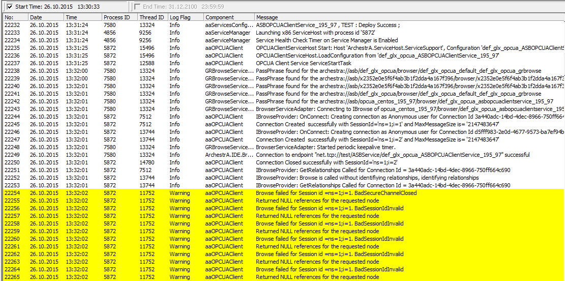 Получил доступ к логам клиента OPC UA из WW.