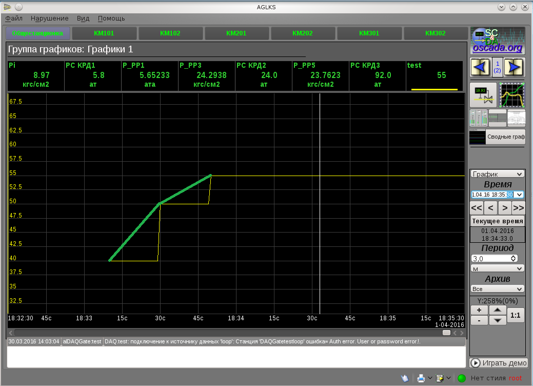 Все заработало после удаления старых файлов проекта AGLKS из /home/user/.openscada. Результат прикрепил (рис.1).