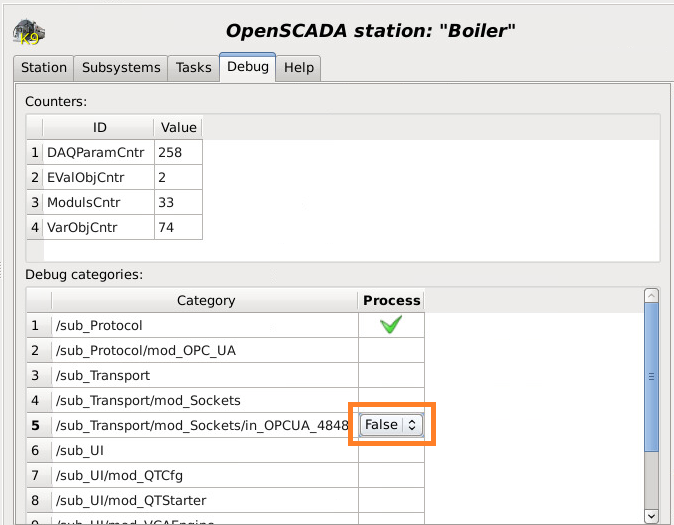 Случайно встретил, что OpenSCADA перестает отвечает если: на вкладке Debug поставить флаг True для подкатегории, когда категория при этом не включена.