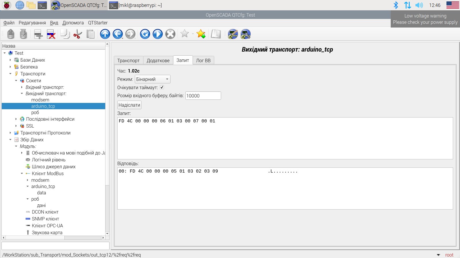 Коли в закладці Транспорти - сокети - запит задаю вручну запит і ставлю галочку очкувати таймаут, отримую правильну відповідь: