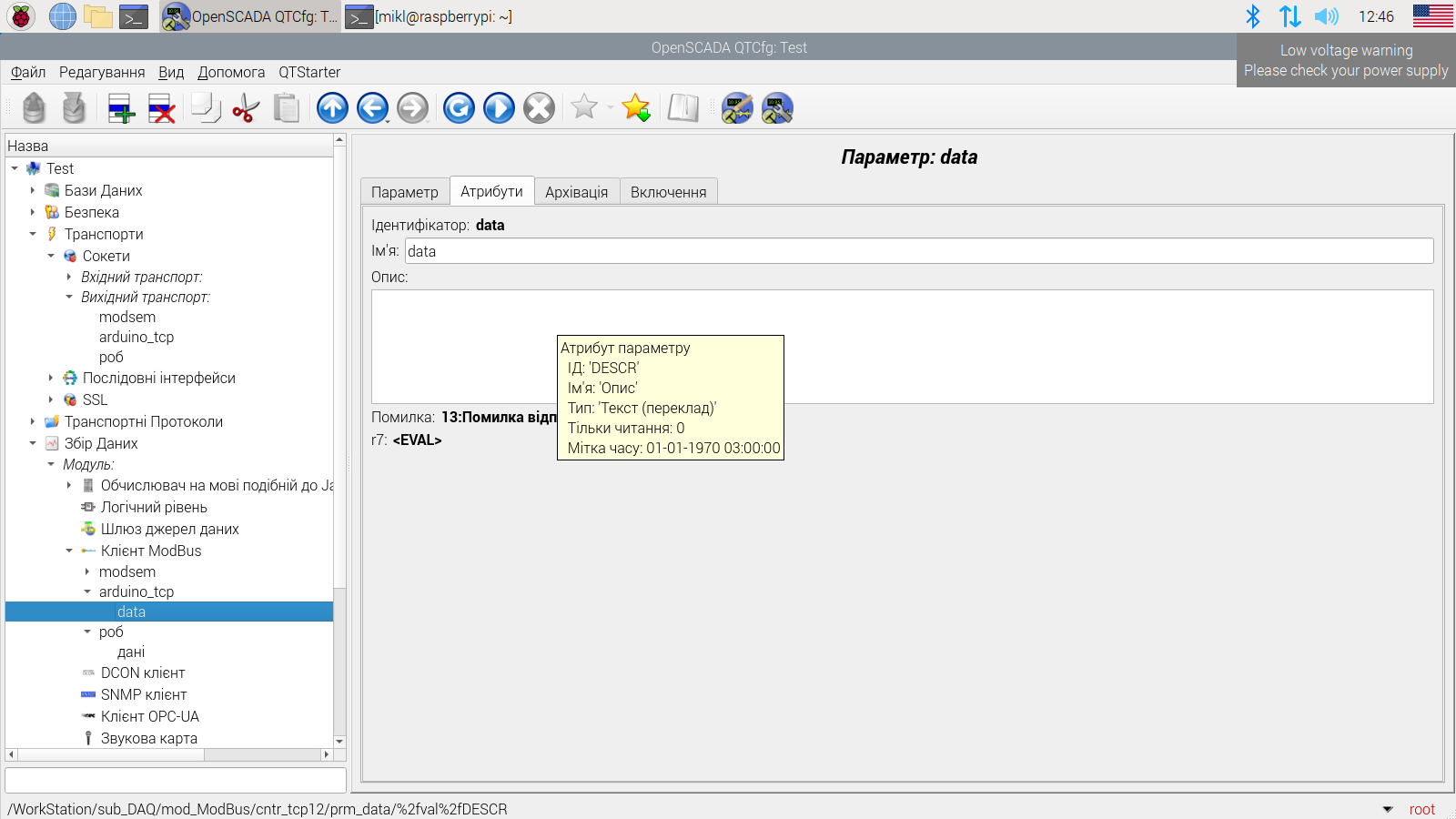 Доброго дня. Виникла проблема з ModBus TCP в OpenScada. Пыд час отримання параметра (регістра) видає помилку: