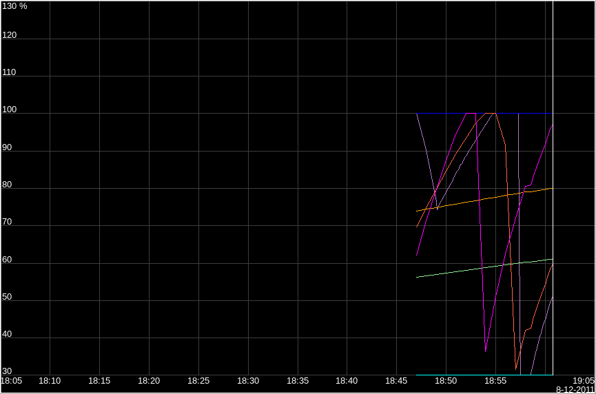 На рисунках 2 и 3, те же параметры на интервале 1 час. И как видно (рис. 3) переключение на относительную шкалу сильно "портит" картину.