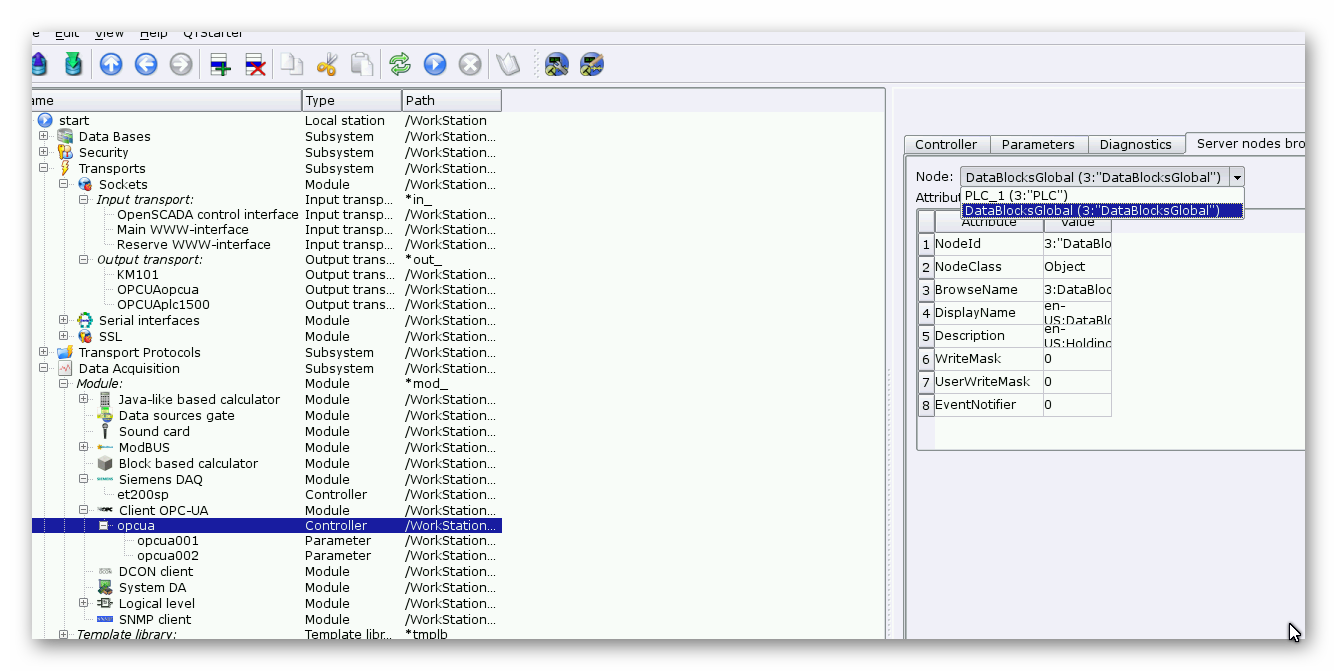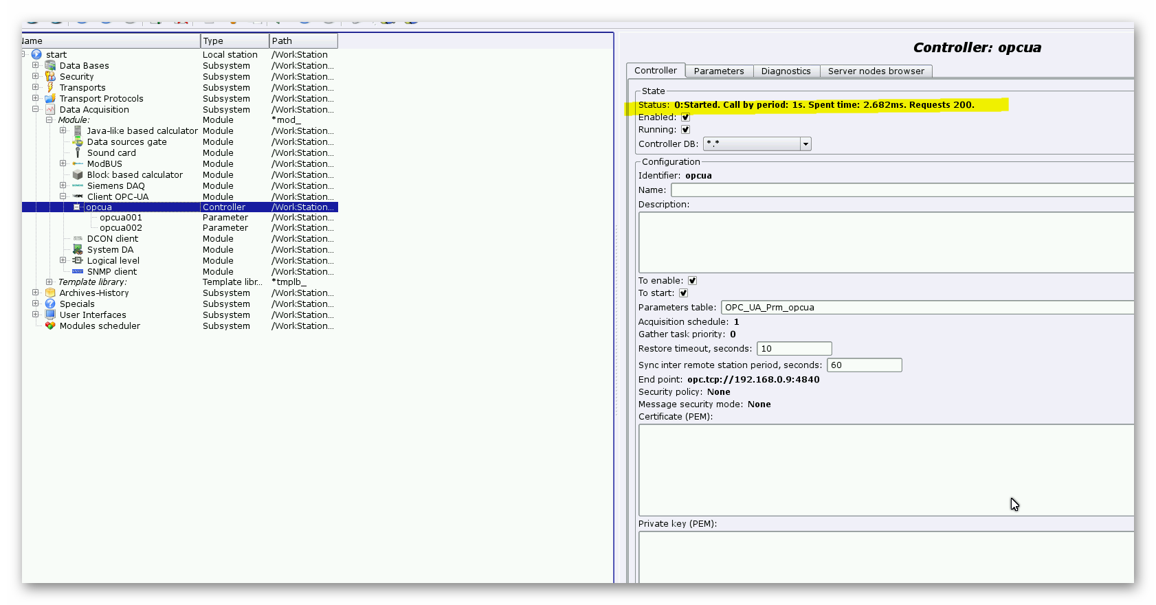 Судя по статусу на вкладке Controller связь с opc ua сервером есть (см. вложение 005)