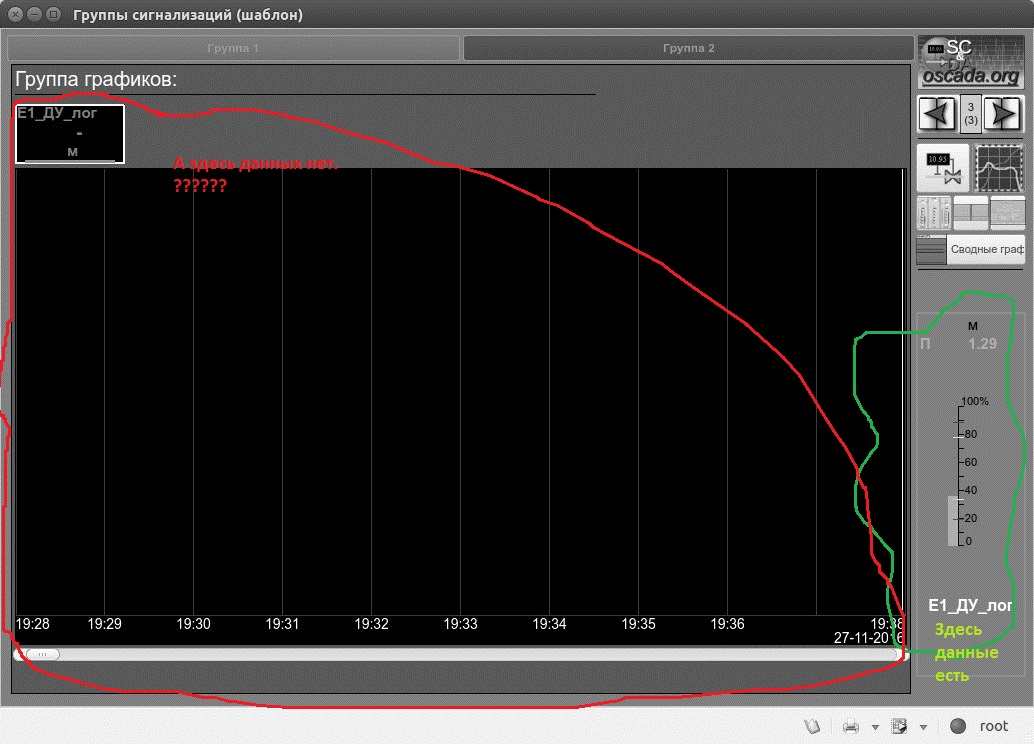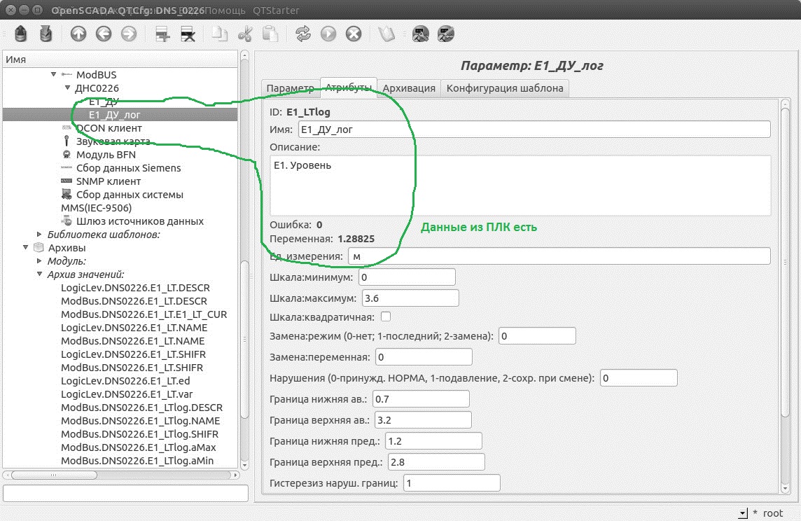 На Барграфе справа внизу данные есть. Так как параметр типизированный - цветом отображает нарушение уставок (границ). (Значение параметра менялось из ПЛК.)