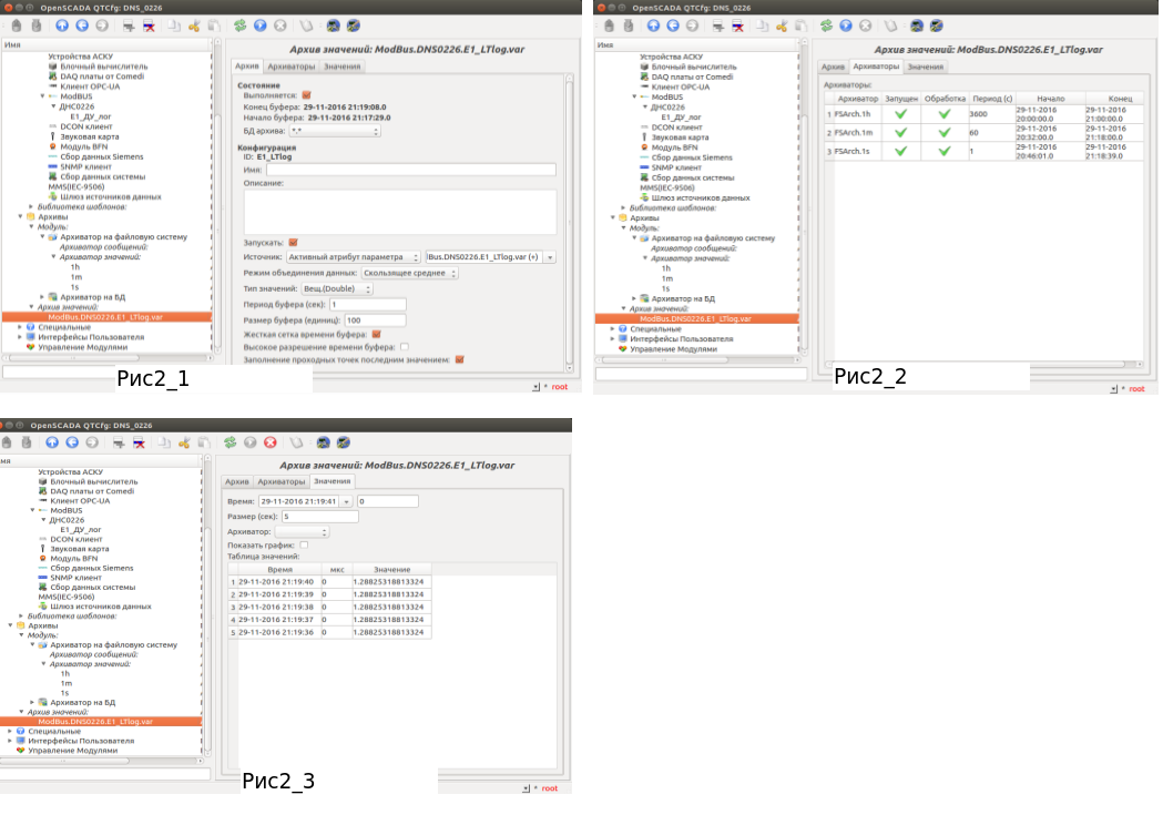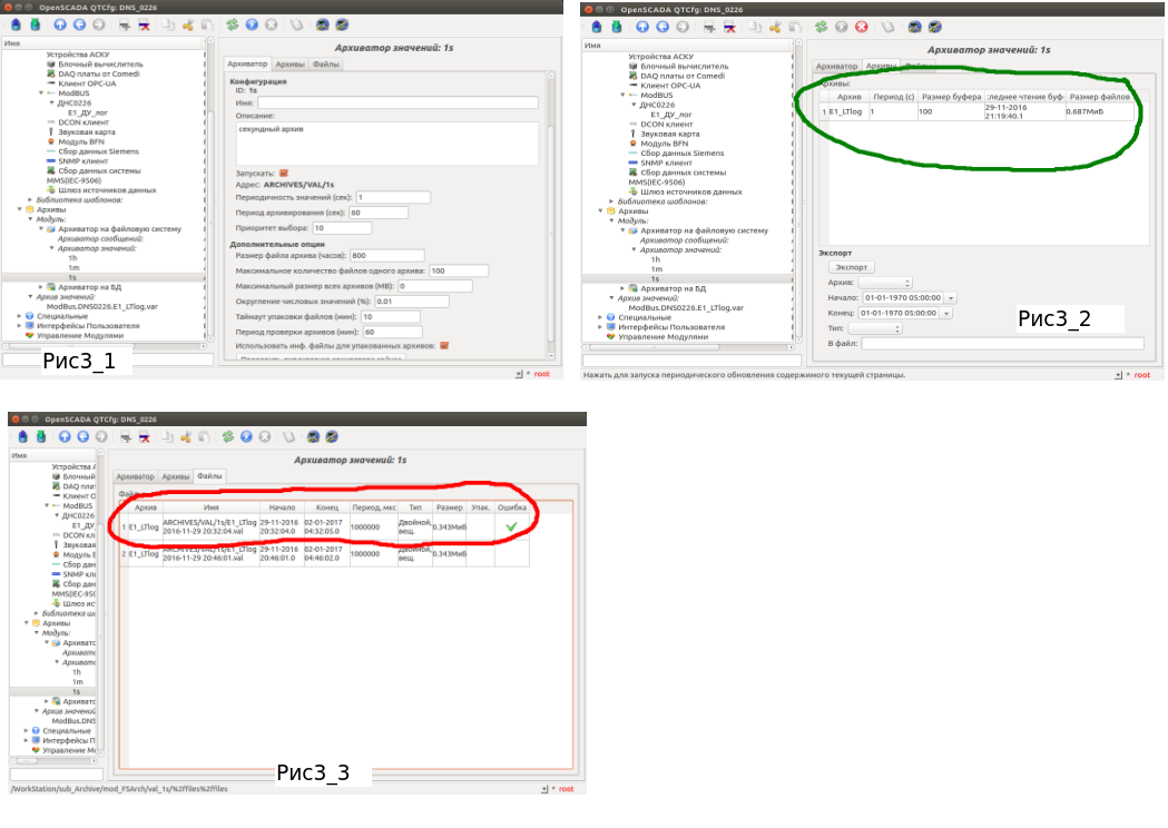 Рис3_3 - файлы архивов созданы. Ошибка - это мой эксперимент. При запущеной OPENSCADA удалил папку ARCHIVES/VAL/1s. Через некоторое время папка была создана автоматически, как и файл архива.
