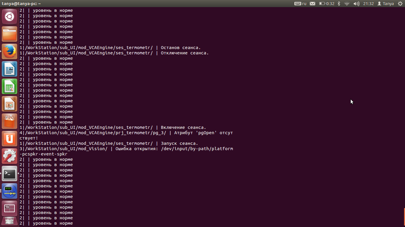 в терминале выводиться сообщение уровень в норме
