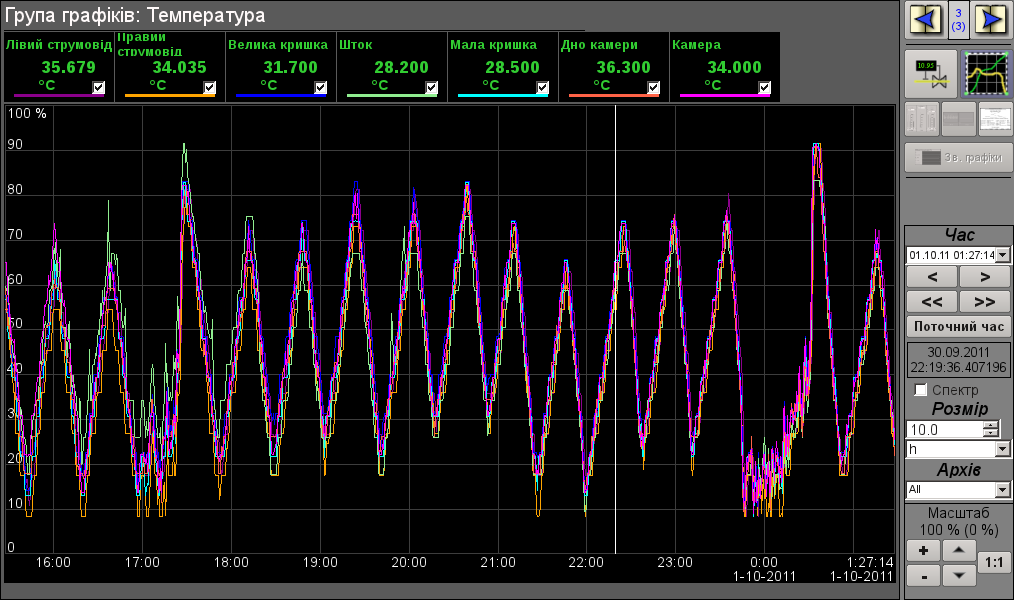 На рисунке 4 отображены параметры температур. Все 6 параметров измеряются в градусах, и было бы неплохо иметь возможность задать для них отображение в абсолютной шкале.
