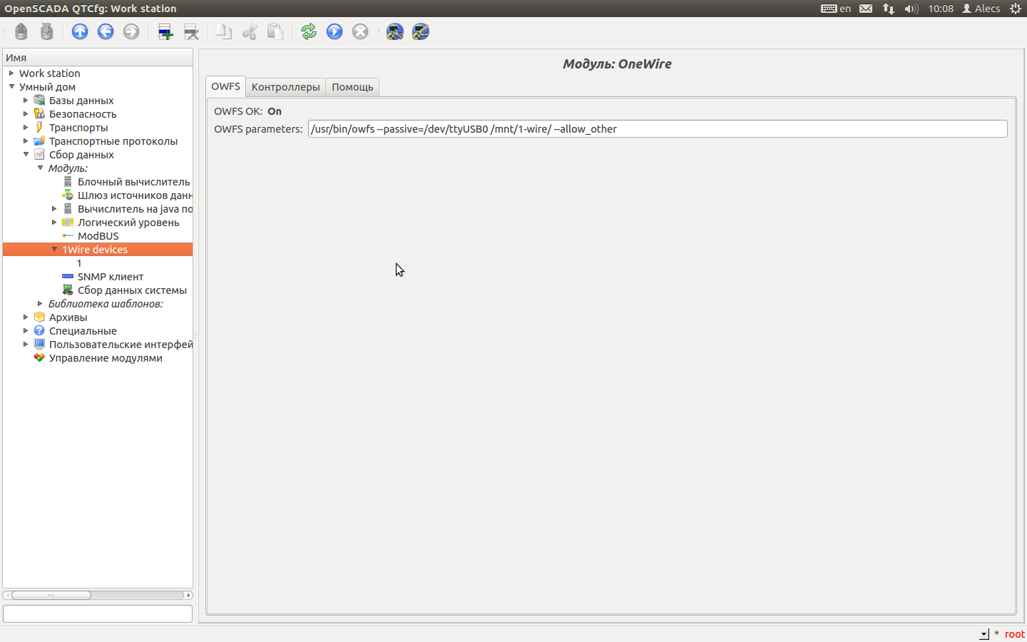 Не правильно понял, поскольку если-бы я делал по реальному железу то нужды использовать OWFS нет. Модуль был реализован как быстрое-пробное решение на основе OWFS, хотя есть ряд других способов, вплоть до независимой реализации, поскольку в том-же OWFS плохо контролируются таймауты, да и само отражение на FS создаёт ряд дополнительных проблем и не нужно оно там. Поэтому когда я серьёзно к нему вернусь он может оказаться сильно изменённым. Задачи тут: http://wiki.oscada.org/HomePageEn/Works/ToDo#h751-12