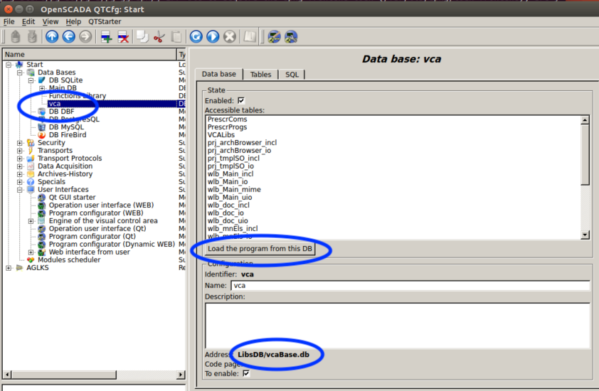 Connection of the OpenSCADA libraries, and "vcaBase.db" concrete, was not saved or those libraries are not presented in whole.