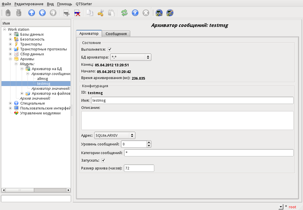 Запускаю скаду, первых сообщений в архиве нет. Установлено новое время начала архиватора. А прошло двое суток, а не более 3-х.