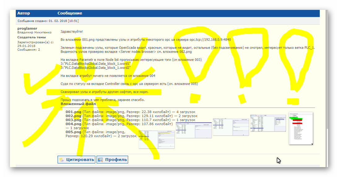 Иначе получите просто фразу — "Не ошибка OpenSCADA" и отключение после трёх подобных, поскольку тут прослеживается получение консультаций в такой способ!