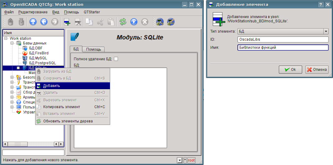 Где? http://wiki.oscada.org/Doc/QuickStart/files?get=SQLite_add.png