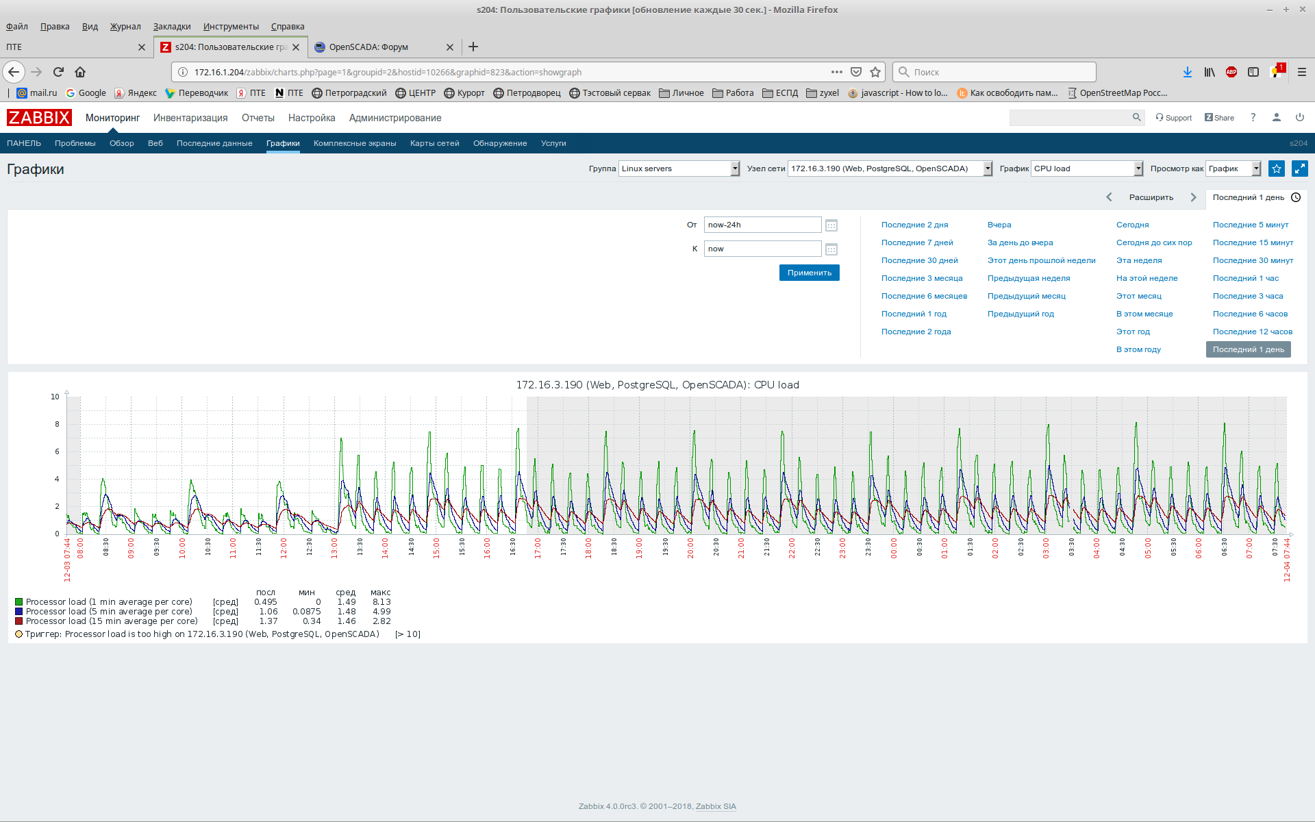 После обновления OpenSCADA увеличилась нагрузка на CPU, На графике, после 13:00, это видно.