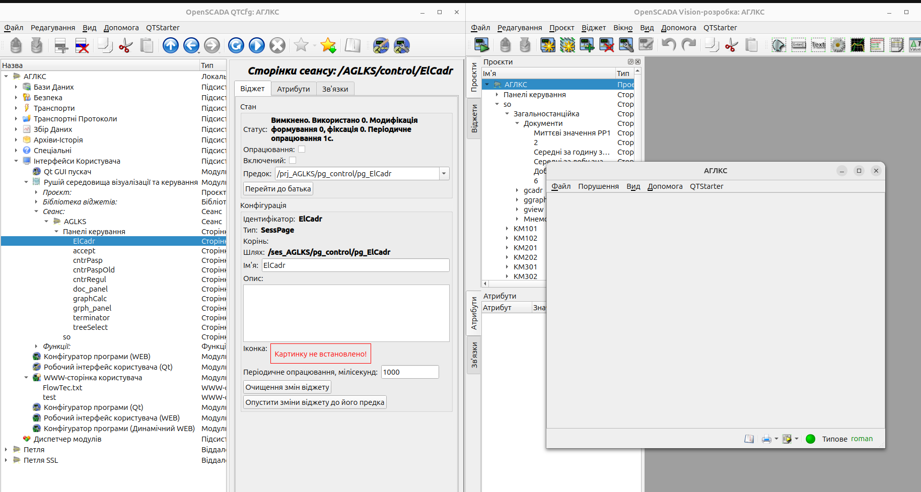 Добрий день , намагаюсь розібратись в OpenSCADA . Хотіла запустити на Ubuntu 24.04.3 "Quick Start", саме АГЛКС, але HMI не відтворюється , також є ця помилка "Picute is not set". Підскажіть будь ласка в чому може бути помилка та чому проект не запускається?
