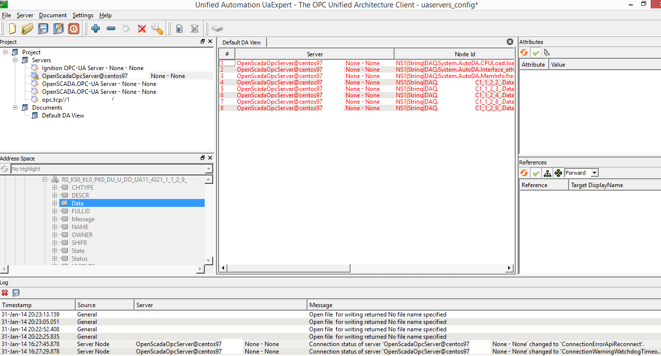 16:27:45.878 | Server Node | OpenScadaOpcServer@centos97... | Connection status of server 'OpenScadaOpcServer@centos97.server - None - None' changed to 'ConnectionErrorApiReconnect'.