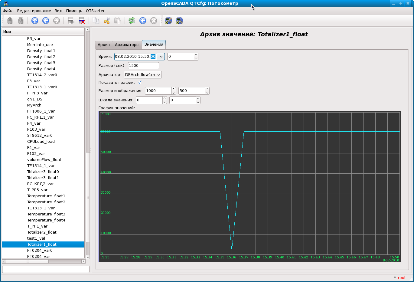 Построение системы получения данных следующее: в модуле модбас для расходомера создан контроллер, каждый параметр это параметр расходомера, например плотность, получаю значения параметров двумя двухбайтными переменными, потом передаю их в модуль логического уровня, где через шаблон получаю вещественное значение, полученное вещественное значение архивирую.