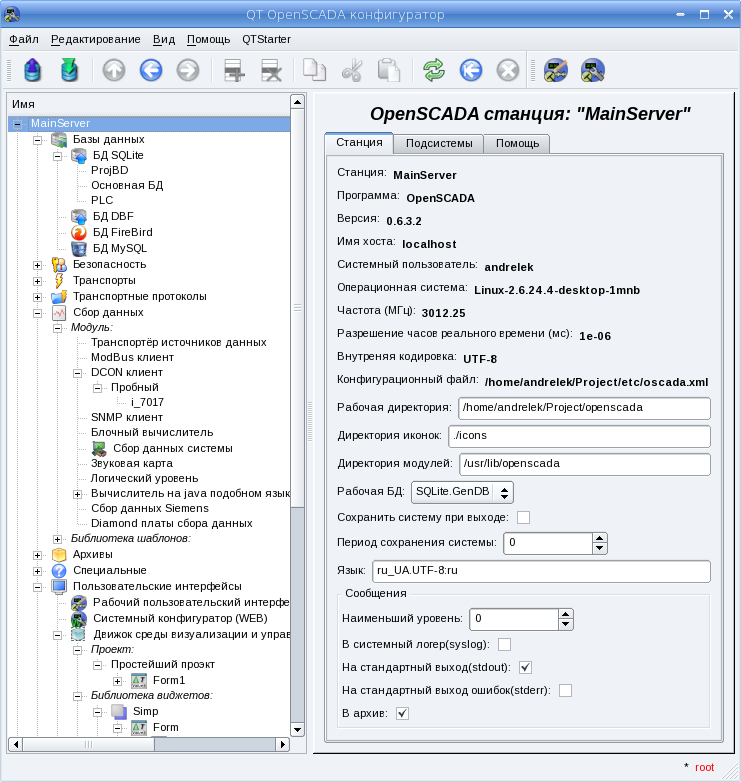 И да, ещё я думаю, что для создания проекта "с нуля" следует пользоваться предназначенным для этого упомянутым openscada_start , а не запускать просто openscada .
