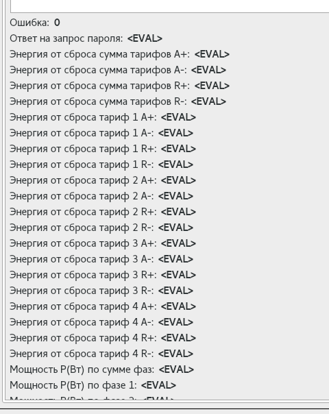 Пробую подключить Меркурий 236ART к openscada. Использую преобразователь Овен АС-4, через конфигуратор от Меркурия считывает и записывает на счётчик. Пробую подключить его к скаде параметры /dev/ttyUSB0:96008N1, тайминги 200:100. Модуль 230 включен, в итоге данные какие-то ходят, прибор опрашивается, но все значения <EVAL>, Ошибка: 0. Пробовал другой преобразователь, настройки счётчика, менял скорость, тайминги и тд., тоже самое :(