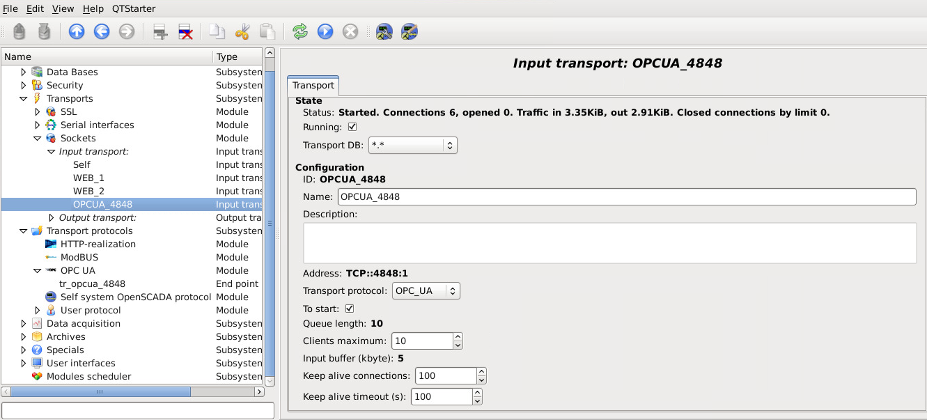 В целом, на данный момент, оптимизирована клиентская часть, а серверная ещё имеет проблемы, основная из которых это неполноценная реализация Publish сервиса, который UAExpert требует в обязательном порядке. Это приводит к тому, что минут через 10 соединение теряется. Проблема в том, что сервис Publish асинхронный, т.е. ответ идет секунд через 5 после запроса, что входной транспорт+протокол в OpenSCADA не поддерживал, вот только утряс изменения в API OpenSCADA на этот предмет и в ближайшее время реализую нормально. Кроме того хотел серверную часть оптимизировать как и клиентскую: автоматически создавать транспорт для протокола, с нужными настройками, и разделить объект EndPoint на типы: Discovery, Server, Gate.