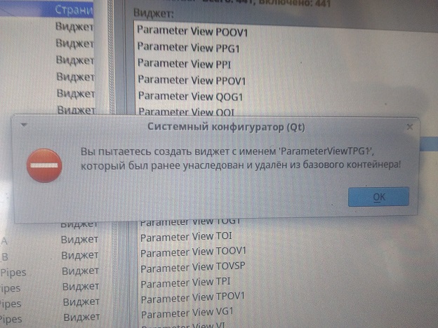 "Вы пытаетесь создать виджет с именем 'ParameterViewTGP1', который был ранее унаследован и удалён из базового контейнера"