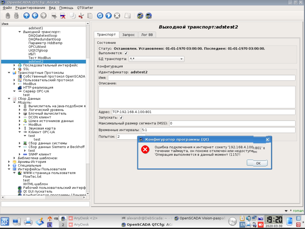 IP адрес OpenScada на линуксе: 192.168.4.13