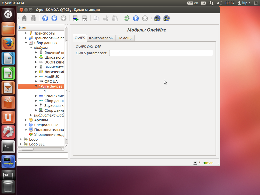 Параметры OWFS — те самые параметры, как в командной строке утилиты OWFS. В первую очередь там указываются адаптеры 1Wire и их типы.